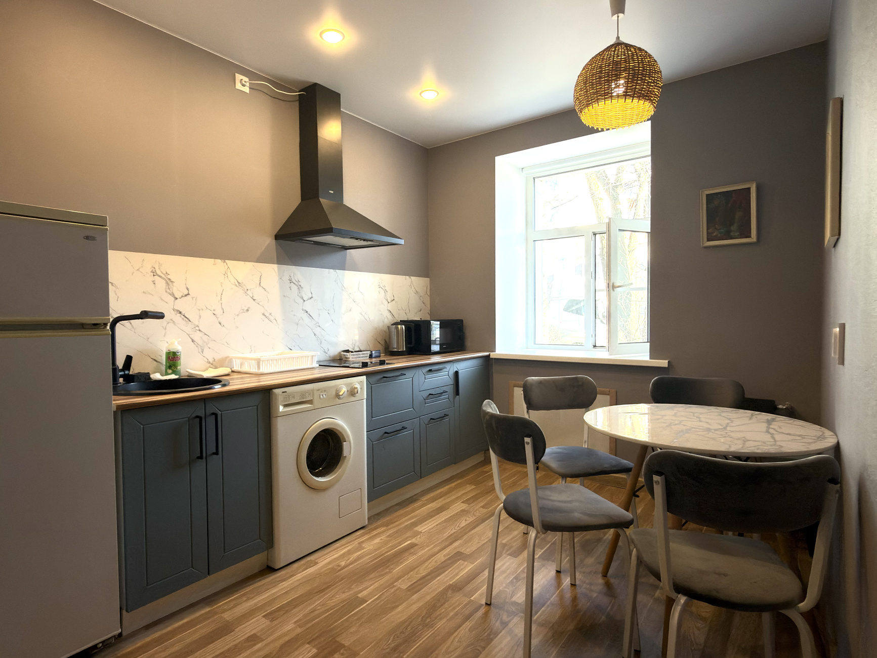 - В квартире набор столовых приборов и посуды на 4 персоны.